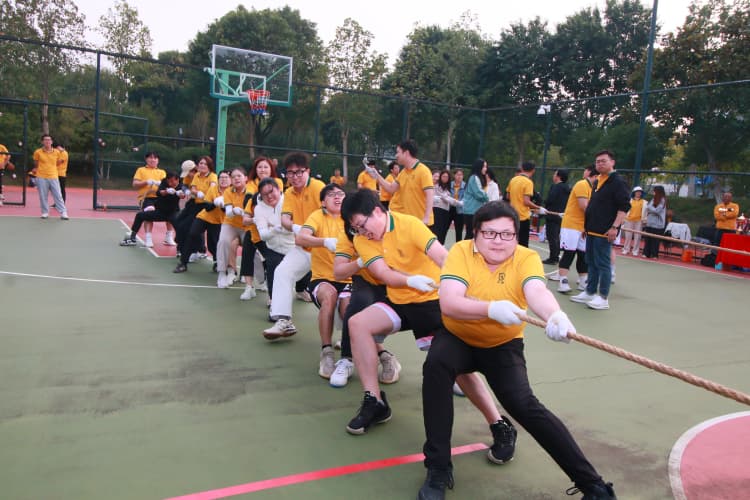 第二環(huán)節(jié)的男子籃球賽更是精彩紛呈。球員們在球場上奔跑、跳躍、傳球、投籃,每一個動作都充滿力量與激情。場上選手你爭我奪,場邊啦啦隊熱情助威,歡呼聲與吶喊聲此起彼伏,將比賽氛圍推向高潮。籃球賽不僅是一場競技對決,更是團隊凝聚力與公司精神風(fēng)貌的生動體現(xiàn)。